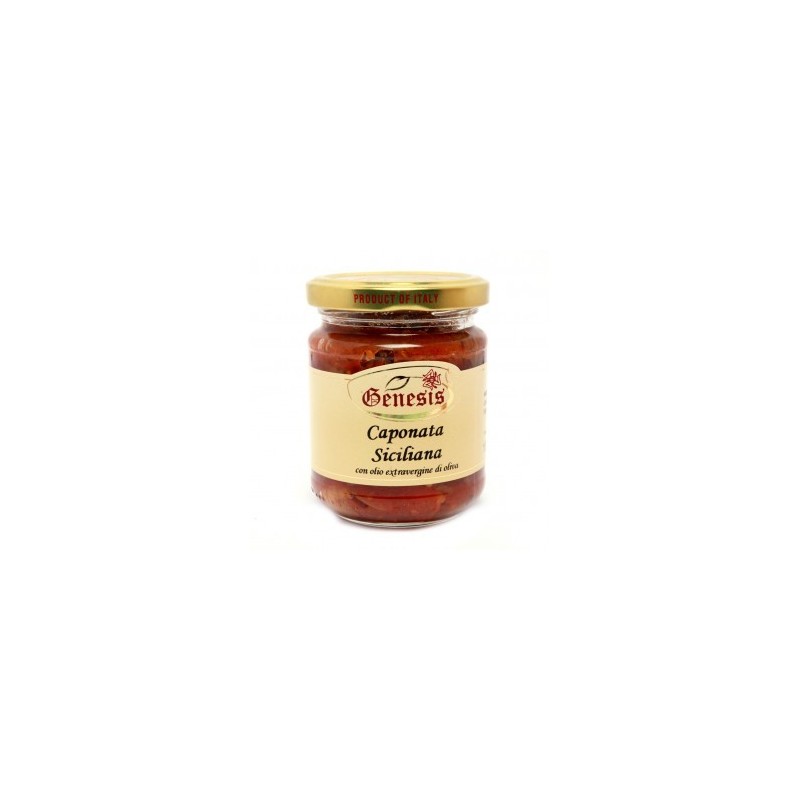 Ingredienti: ortaggi in proporzioni variabili(melanzane*, peperoni*, cipolla*, sedano, olive, carciofi, capperi, passata di pomodoro) 92%, olio extravergine di oliva, aceto di vino, aceto balsamico,zucchero, sale marino.